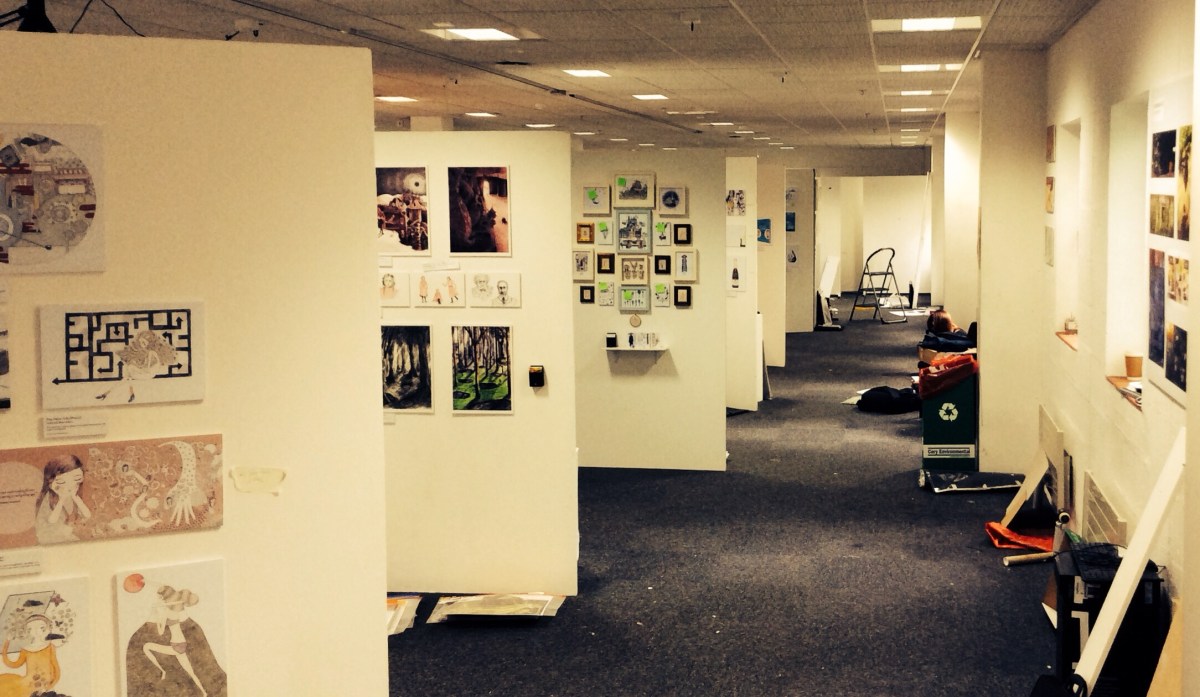 Published May 13, 2015 at 2168 × 1261 in Falmouth illustration Degree show goes up. Next → Degree show set up in progress
