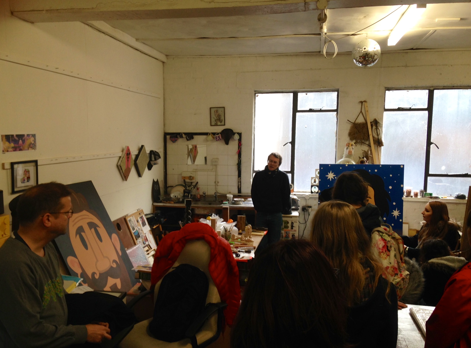 img_2771 Published December 5, 2016 at 1876 × 1384 in Visit to Pete Fowler’s Studio in east London ← Previous Next → Pete Fowler talking to students in his east London studio